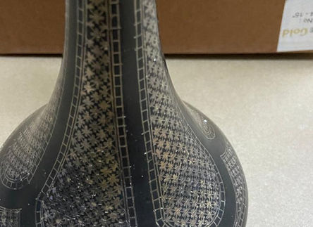 What's so special about this Bidriware Silver Inlay Vase?- This 400-year-old legacy Indian craft is rare and can be only made with the soil found at Bidar fort that turns zinc & copper metal into sheer black when dipped in the soil.
