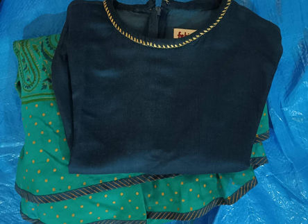 Elegant Fab india skirt set . Top is peacock blue and skirt is green. Very soft Viscose blend fabric