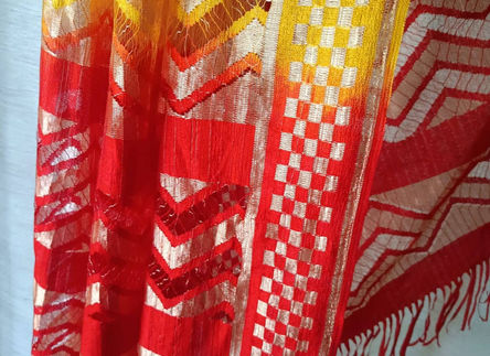Beautiful dupatta with gold leaf buttis and gold checkered borders. Fabric is very soft and flowy and feels like soft silk