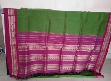 Beautiful pure silk saree with a contrast maroon border and pallu