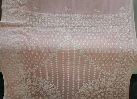 The saree is hand embroidered in chikanhkari work. It is a beautiful shade of coral pink color. Looks very elegant and drapes very well