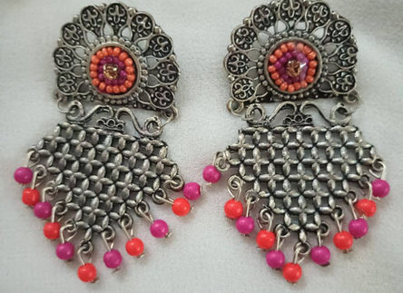 Pink bead Oxidized silver danglers