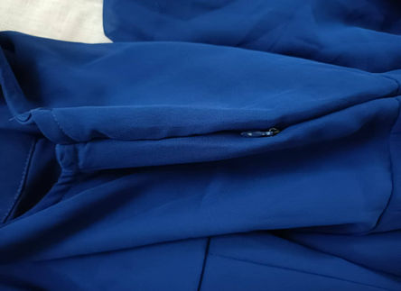 Dress has a zide zipper for comfort fit